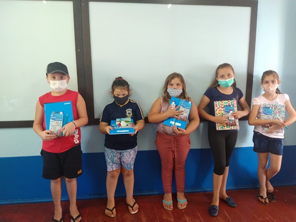 Na oportunidade, foram distribuídos “Kits Escolares” para os 455 alunos da Rede Municipal de Ensino, além da entrega de material adquirido do Sistema de Ensino Aprende Brasil, para alunos do 4º ao 9º ano. Segundo Cristiane, o conteúdo adquirido com recursos próprios do município, propõe valorizar o potencial dos estudantes e auxiliar o trabalho dos professores no processo educativo.