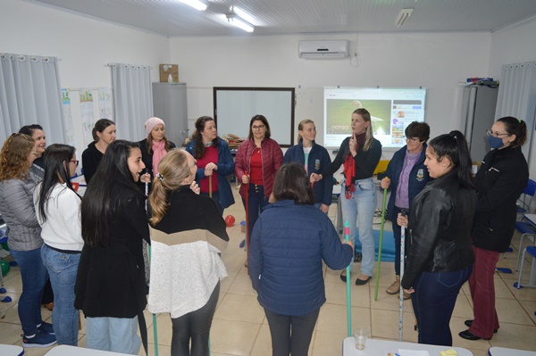As Professoras, estagiárias e Agentes Educacionais, das turmas de Educação Infantil do município, participaram de um curso de Formação Continuada cujo propósito principal foi a apresentação de materiais didáticos, jogos e brincadeiras utilizados nas práticas docentes, de educação infantil, com foco no desenvolvimento dos objetivos de aprendizagem estabelecidos nos 5 Campos de Experiências previstos na Base Nacional Comum Curricular (BNCC).