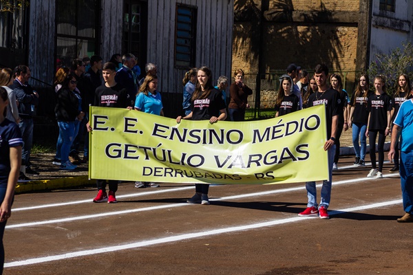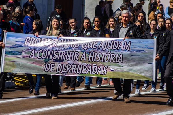 O desfile foi realizado no dia 3 de setembro, e contou com a participação da Banda Marcial de Derrubadas; Grupo Melhor Idade; Mulheres participantes do CRAS e PCDs; Educação Infantil; Anos Iniciais do Ensino Fundamental; Anos Finais do Ensino Fundamental; Ensino Médio; APAE de Tenente Portela, Grupo de Profissionais que ajudam a construir a história do Município (representantes do quadro dos Servidores Municipais de Derrubadas); Grupo de Cavalarianos do CTG Veteranos da Tradição de Derrubadas e Desfile da Banda de Música e do Pelotão do 1º Batalhão de Comunicações do Exército – Santo Ângelo.