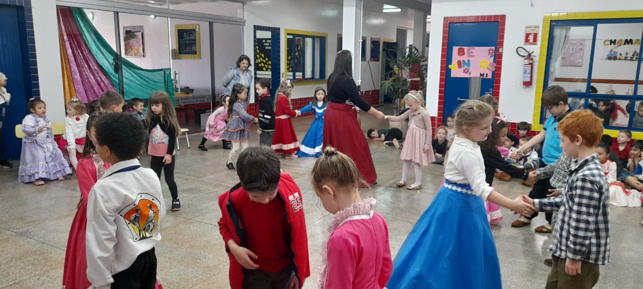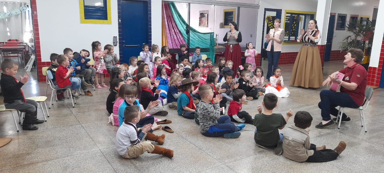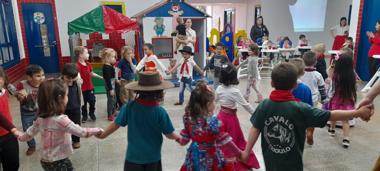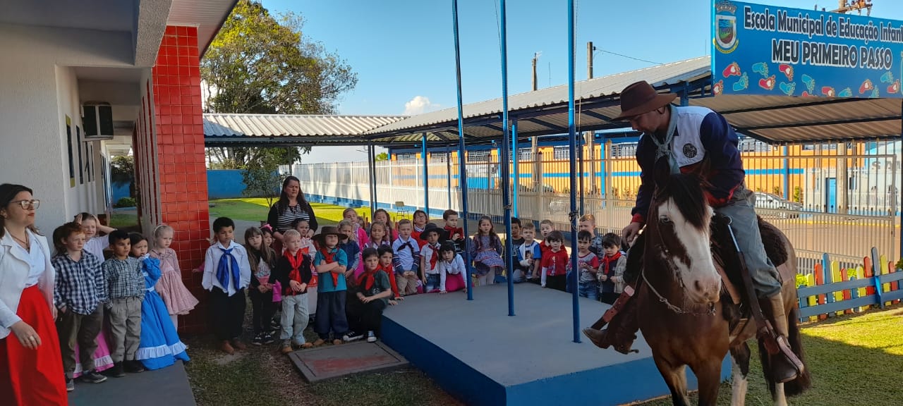 A Escola Municipal de Educação Infantil Meu Primeiro Passo desenvolveu na tarde do dia 16 de setembro, atividades referente à semana Farroupilha. Iniciou-se a tarde com a entoação do Hino Rio-grandense. Esse momento contou com a presença do Tradicionalista Anderson Hergessel, que trouxe aos alunos a alegria de acompanhar a encilha, mostrando a importância do cavalo bem encilhado.