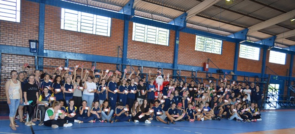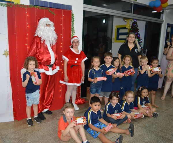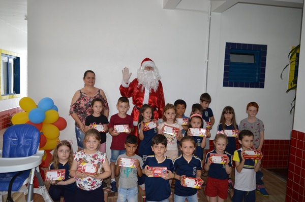 A chegada do Papai Noel foi o momento mais aguardado pelos alunos, o bom velhinho distribuiu balas e tirou fotos com os estudantes.