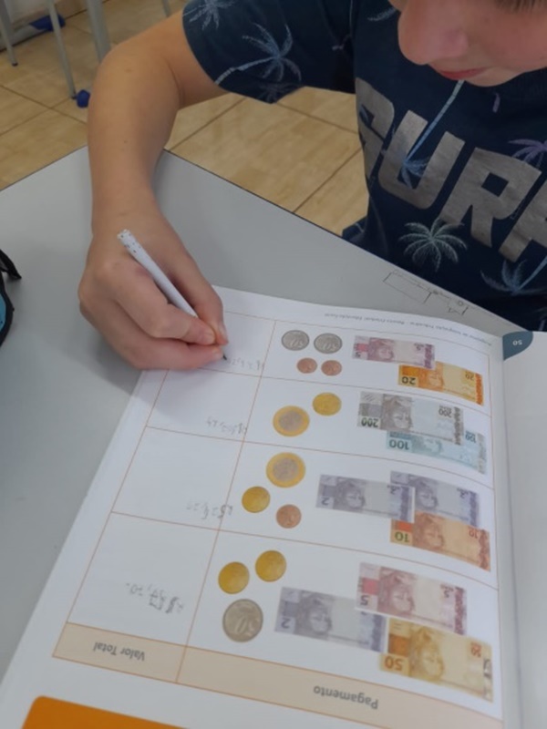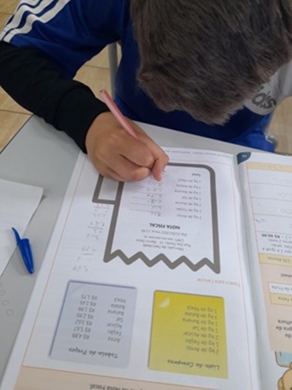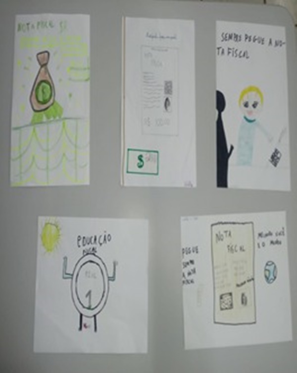 A partir da utilização do Material Pedagógico disponibilizado pela Receita Estadual, foram desenvolvidos trabalhos de interpretação textual, músicas, pesquisas, atividades do sistema monetário com a nota fiscal, gráficos e resolução de problemas.