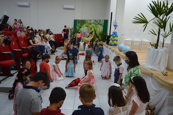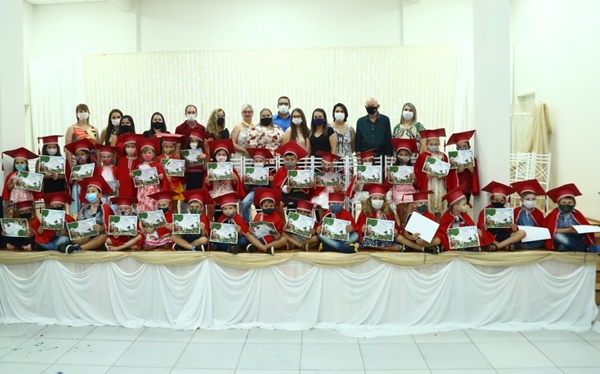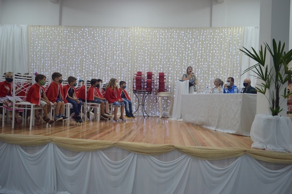 O ato solene de formatura para as turmas do Pré-Escolar II, das Escolas Municipais Duque de Caxias, Juscelino K. de Oliveira e EMEI Meu Primeiro Passo, ocorreu na tarde da última sexta-feira, 10 de dezembro de 2021. Pais, alunos, diretoras e professoras puderam acompanhar juntos a apresentação das crianças, a entrega dos certificados e do mimo preparado com muito carinho pela SMECD e pelas Escolas Municipais.