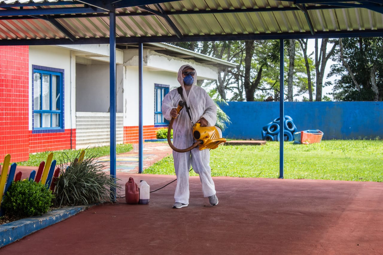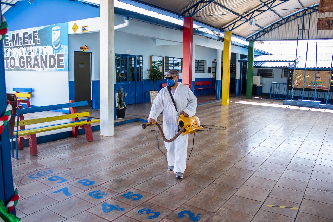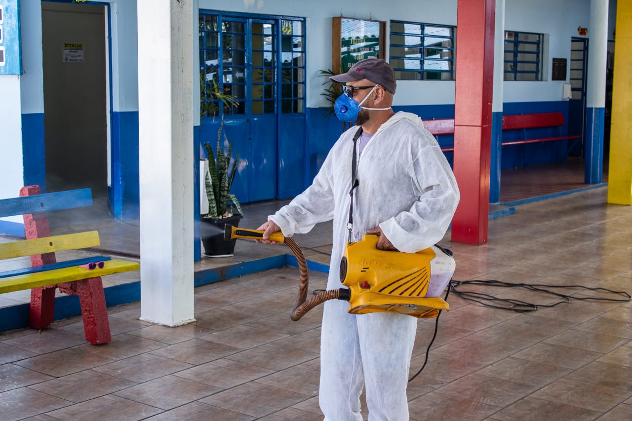 O procedimento sanitário, foi realizado em todas as repartições das escolas e veículos utilizados para o transporte de alunos.