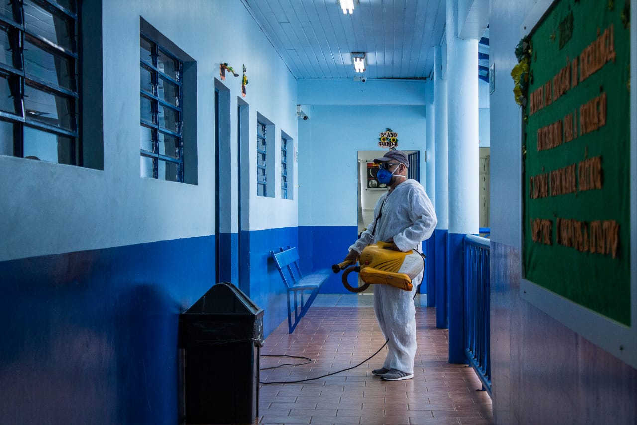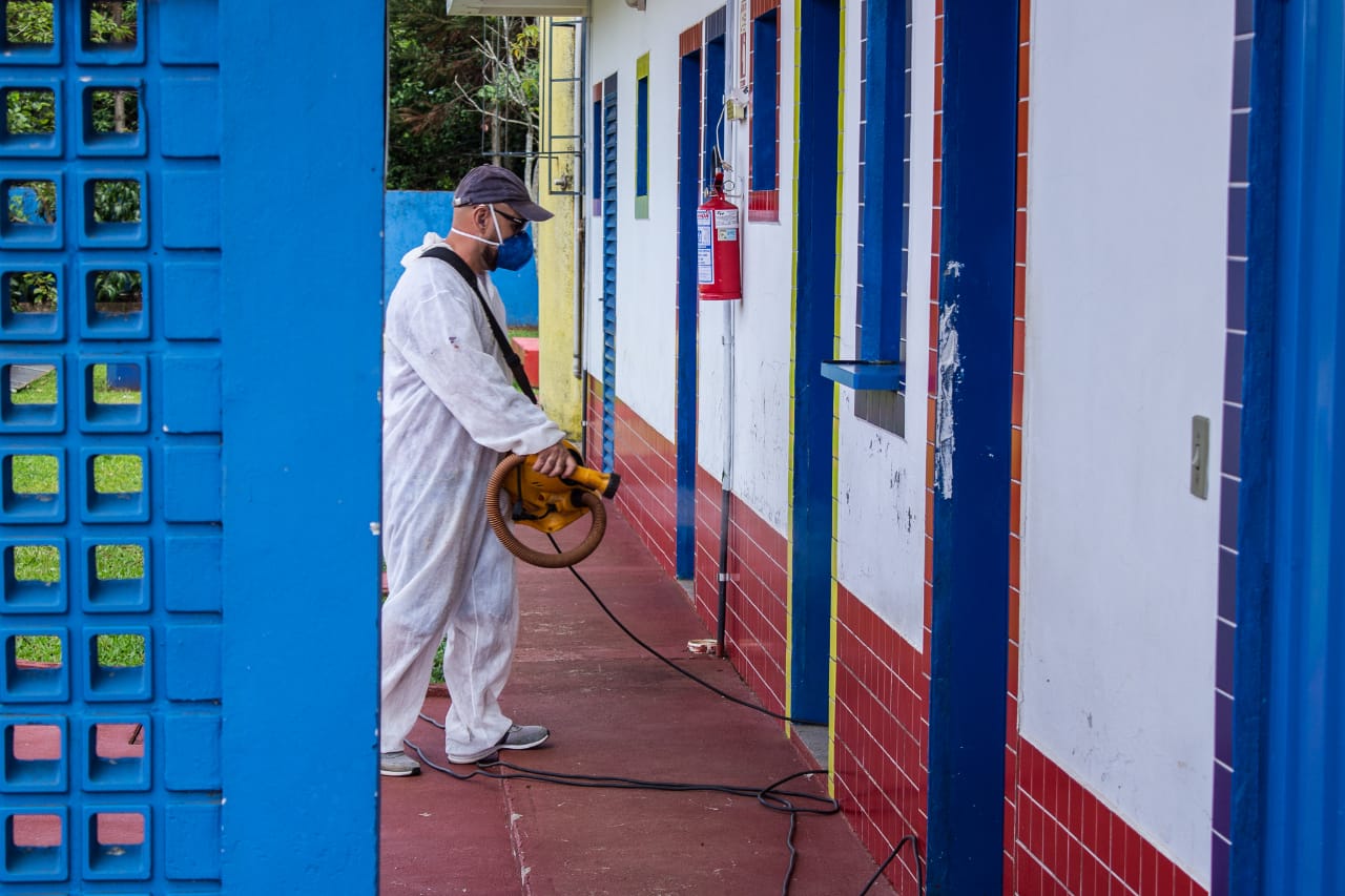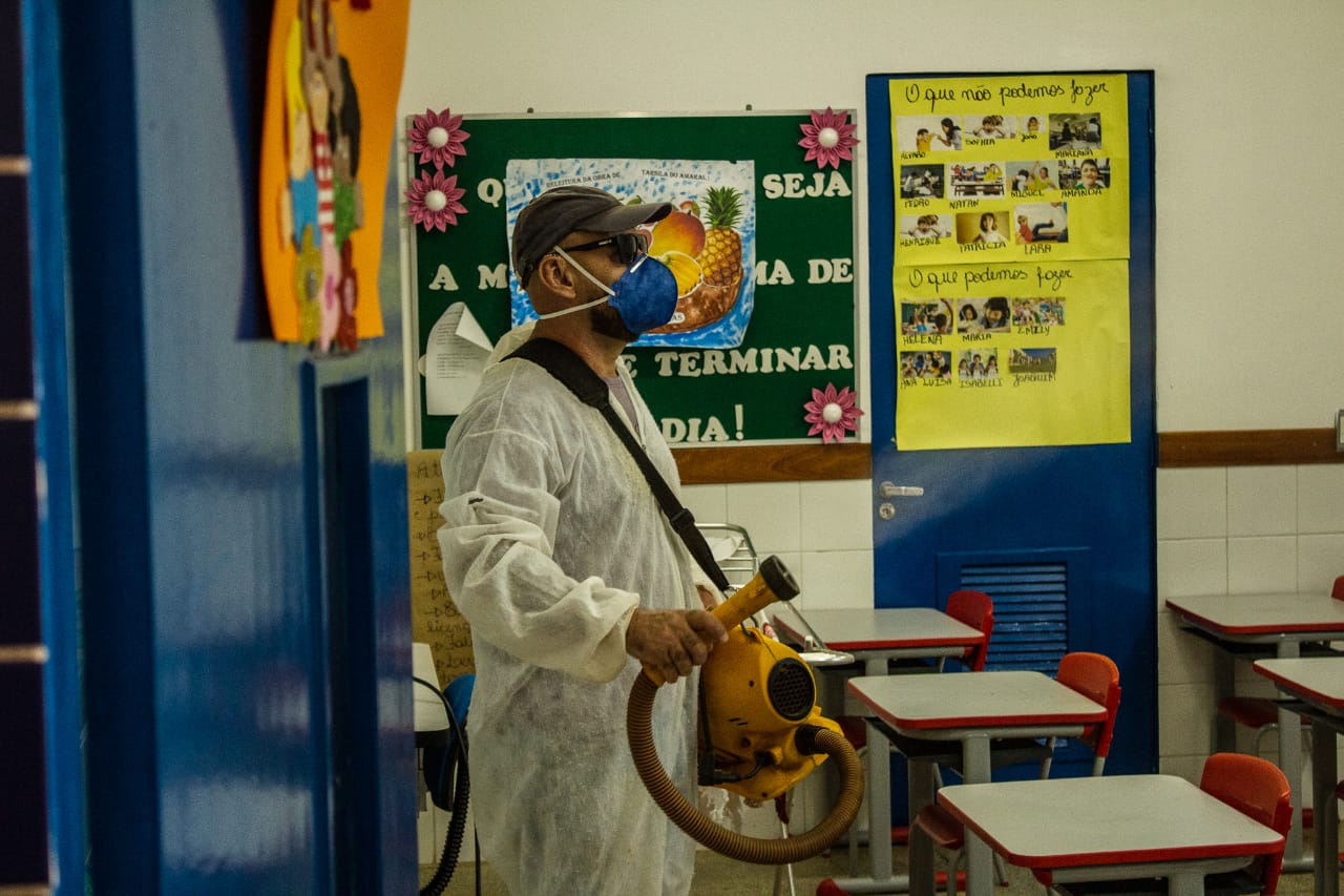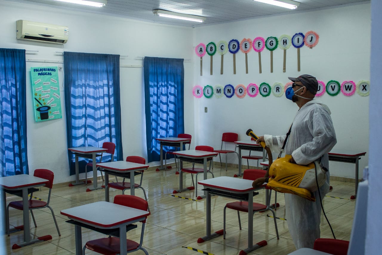 O procedimento sanitário, foi realizado em todas as repartições das escolas e veículos utilizados para o transporte de alunos.
