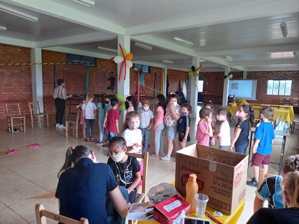 Entre os dias 13 a 19 de outubro, do ano de dois mil e vinte um, os alunos da Escola Municipal de Ensino Fundamental Salto Grande, do Município de Derrubadas, estiveram participando de atividades de integração, alusivas ao Dia das Crianças.